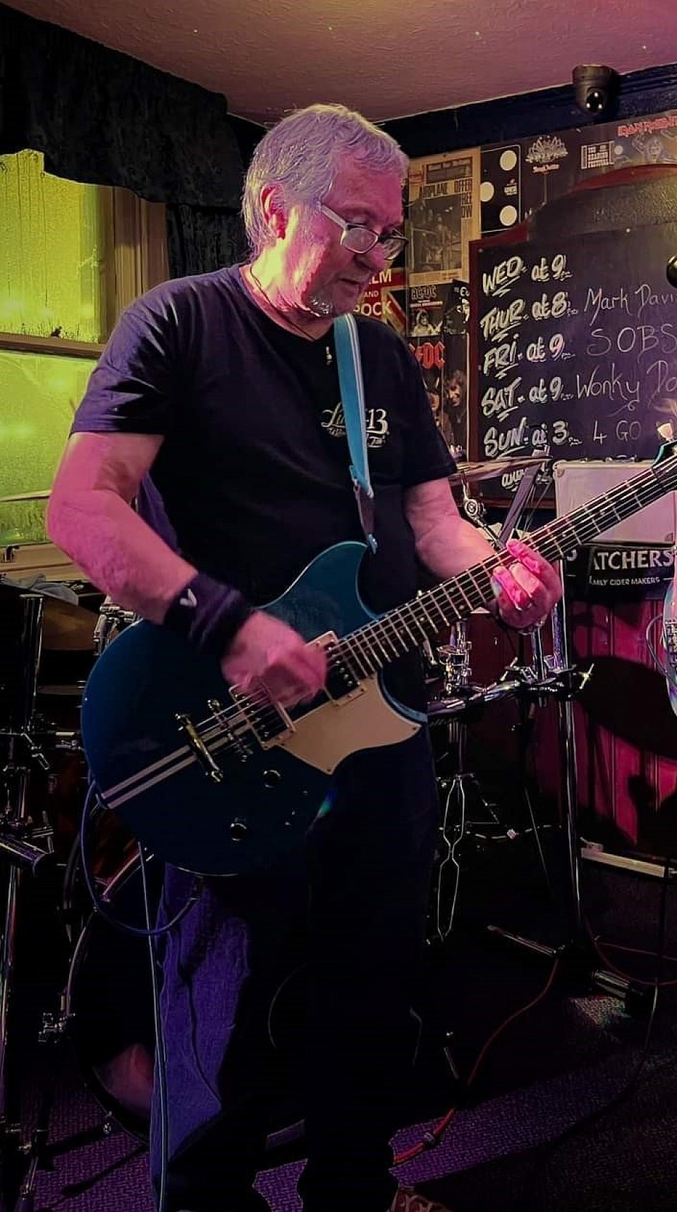 Paul is another of our dep drummers, he plays regularly with Skint, a great rock band here in Dorset. Paul does most of the drumming in the band at the moment while Neil (see below) learns our set. He is a brilliant drummer and has a great sense of humour. He comes to our rehearsals and eats all our Jaffa cakes!!